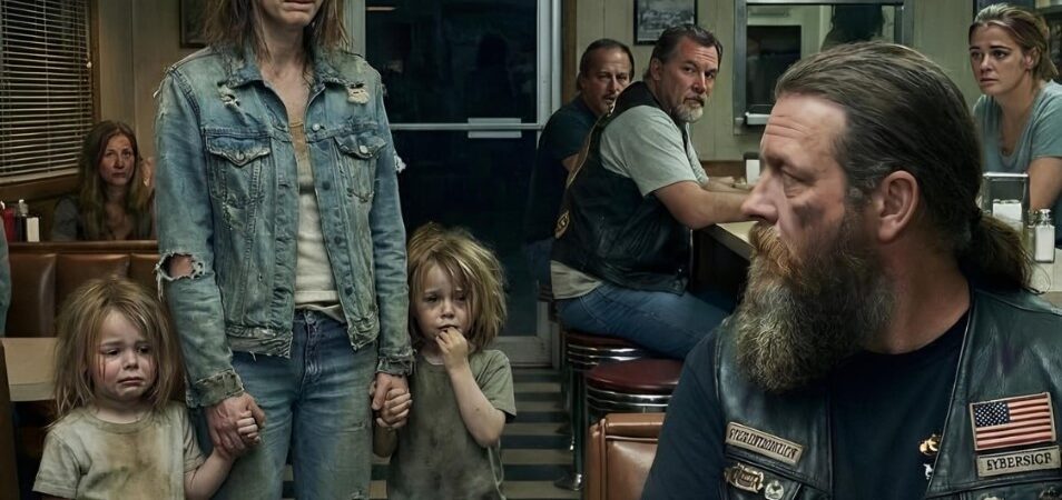 The camera snapped—hard—landing on a woman standing in the middle of the diner, shaking, her voice already breaking apart.