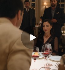 Candlelight flickers across polished glass—soft jazz drifting through the air, elegant guests speaking in low voices—everything controlled, perfect—