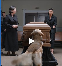 The chapel sits in heavy silence—dim light, black clothing, quiet grief gathered around a closed coffin—