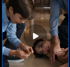 The boys’ voices echo as their father rushes in—fast, urgent—dropping to his knees beside her.