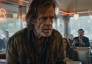 Engines ROAR across an empty highway—dust exploding into golden sunset light—bikers tearing through the frame at full speed—