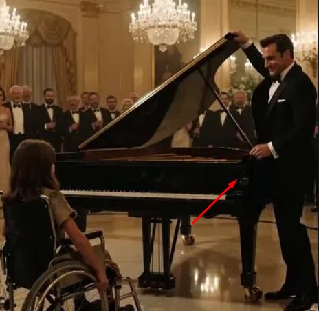 Crystal chandeliers shimmered above the luxury ballroom as elite guests laughed over champagne and the black grand piano gleamed center stage. Then the first shock cracked through the room—Victor slapped the piano lid so hard the sound rang across the marble floor. He pointed down at the girl in the wheelchair before him and smirked. “If you can play… I’ll adopt you.” Small cruel laughter spread through the crowd. The ten-year-old girl in a worn dress said nothing. Calm eyes. Fragile frame. She gripped her wheels and rolled straight toward the piano.