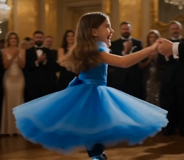 Beside a black wheelchair stood an eight-year-old girl in a blue princess dress, tears on her cheeks, small hands reaching toward the dance floor she thought belonged to everyone except her.