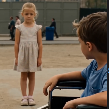 The bikers laugh lightly at first. One biker smirks: “What is this, kid?” The boy clutches the teddy bear again, almost crying: “It’s real… my dad made it for me…” CLOSE-UP — the tiny teddy bear, old, stitched by hand, worn but loved. The laughter fades slightly. Another biker kneels down: “Why are you selling it?” The boy’s eyes fill with tears: