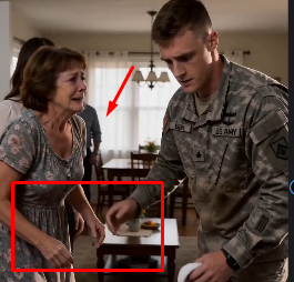 The front door creaked open just after noon. Sunlight spilled across the hallway floor of the modest family home, carrying dust through the warm air. A military duffel bag entered first, then heavy boots, then a tired soldier still in uniform after months away. He had imagined this moment a hundred times—his mother smiling, food on the table, peace waiting behind the door. Instead, a plastic water container slipped from shaking hands and crashed onto the floor. Water spread across the tiles. His mother was on her knees, crying. In front of her, seated comfortably in a chair, was his fiancée with both feet stretched toward the older woman. “Wash properly,” she said coldly, not even looking up. The room froze when she finally did. The soldier stood motionless in the doorway, his bag falling from his hand. His mother lifted tear-filled eyes and whispered in shame,