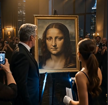The auction hall was silent in that expensive, controlled way — where every whisper carried weight and every glance had a price. Gold light washed over the towering canvases, and the room held its breath around one masterpiece everyone wanted… but only one man already owned.