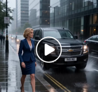 A woman stood at the curb in a dark coat, holding a leather folder tight against her side.
