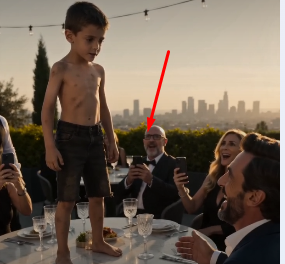Ein barfüßiger Junge stand plötzlich auf dem Marmortisch.
