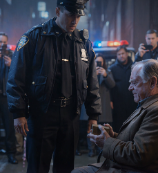 An old man sat alone on a bench, soaked through, clutching a tiny wooden box to his chest.